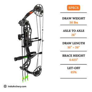 - Wide draw length range: 20" – 30"